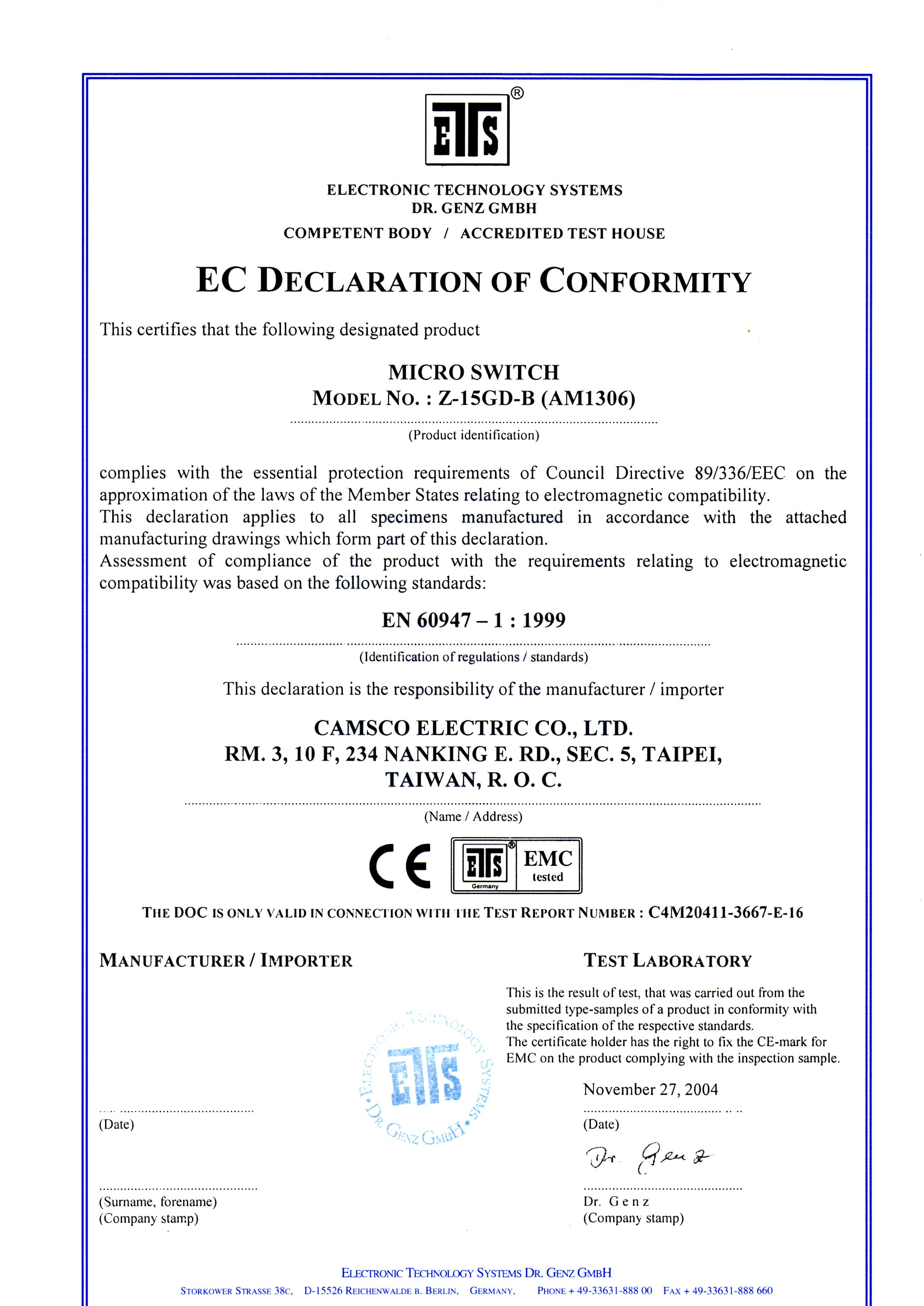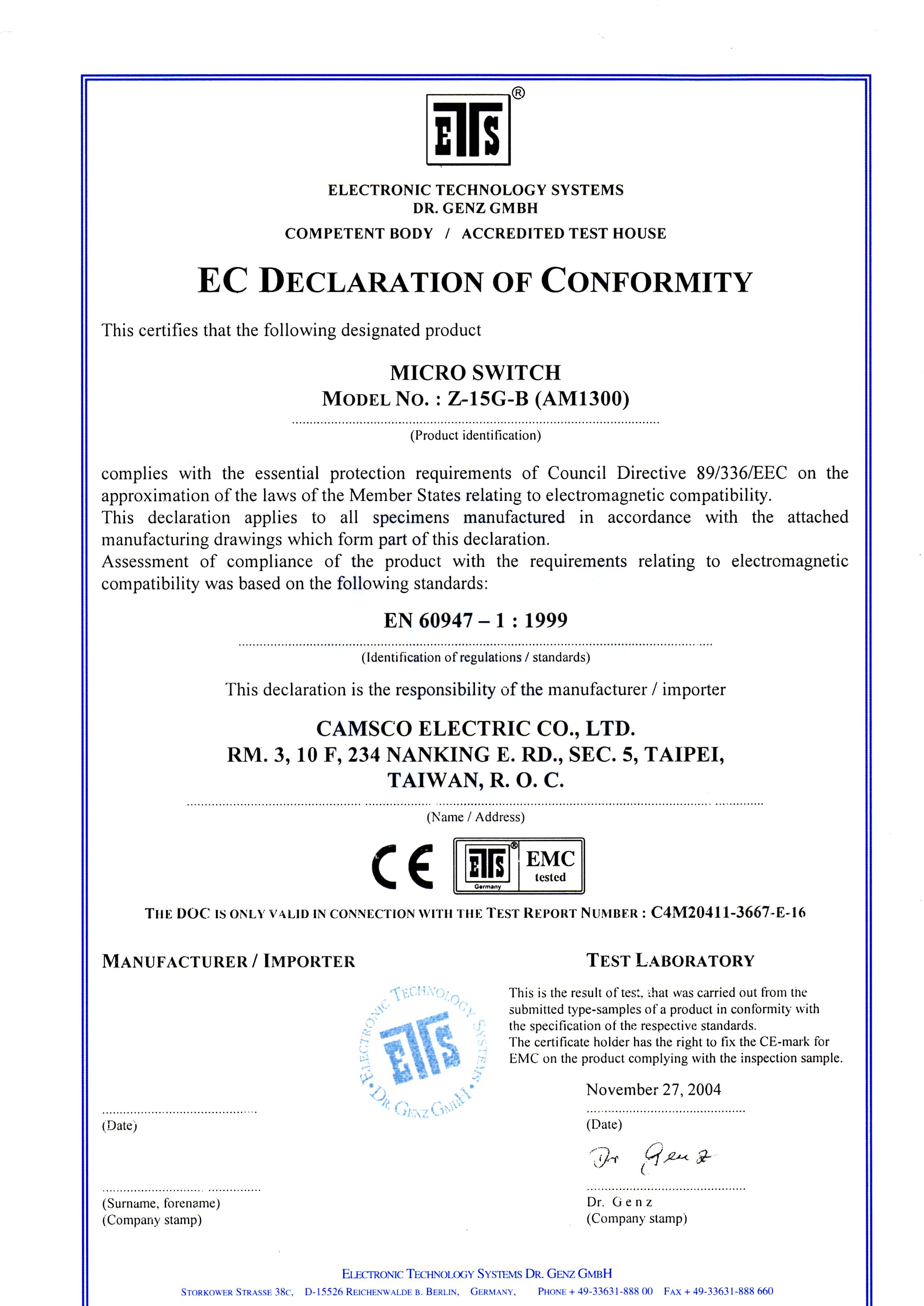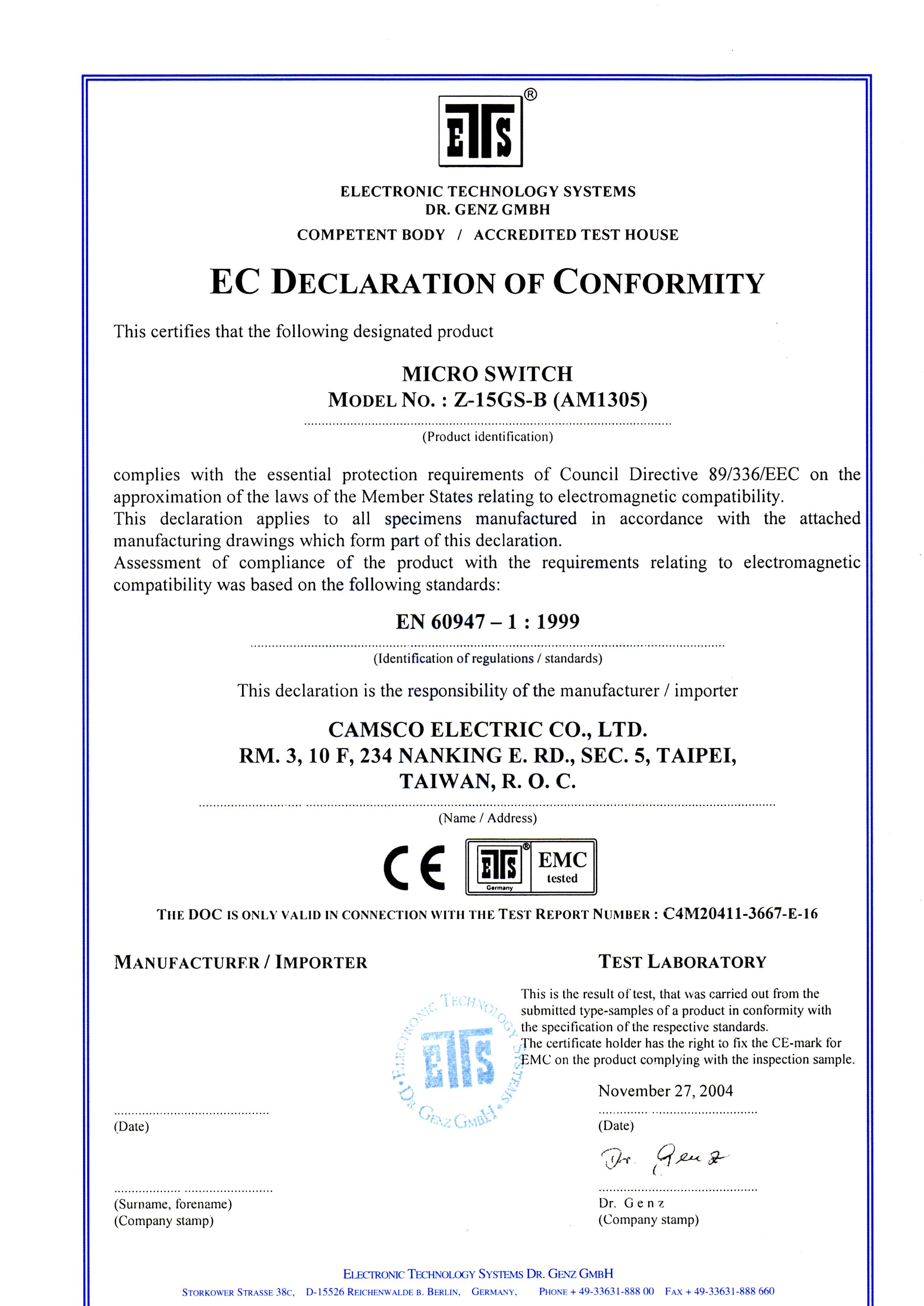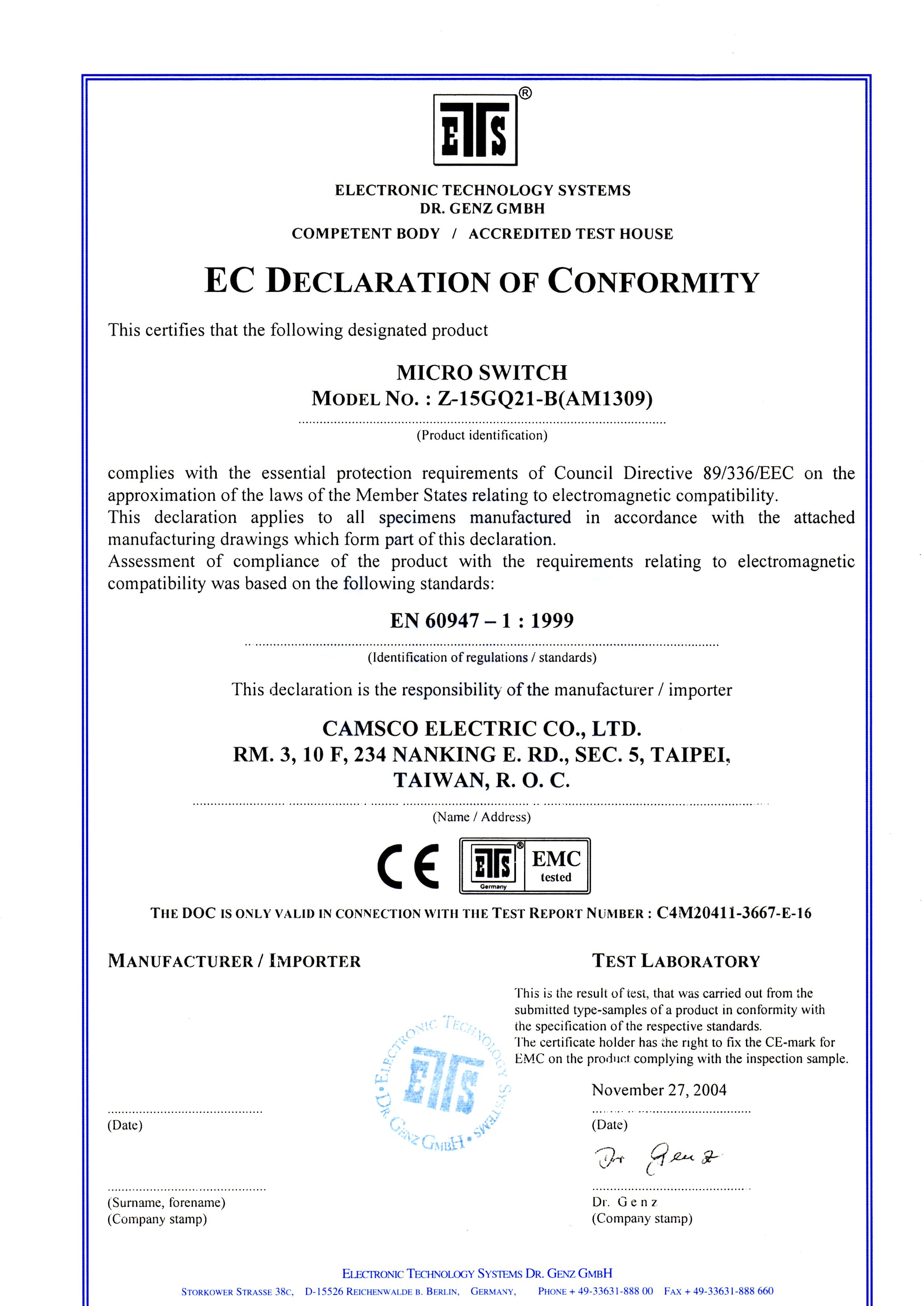 Camsco | CE Certifications