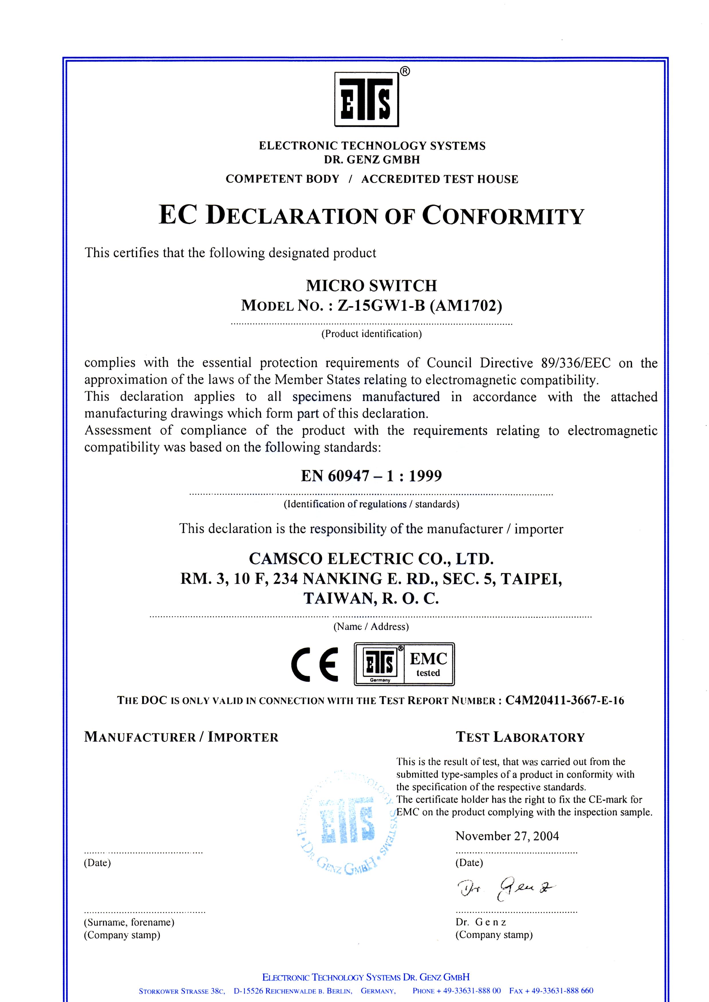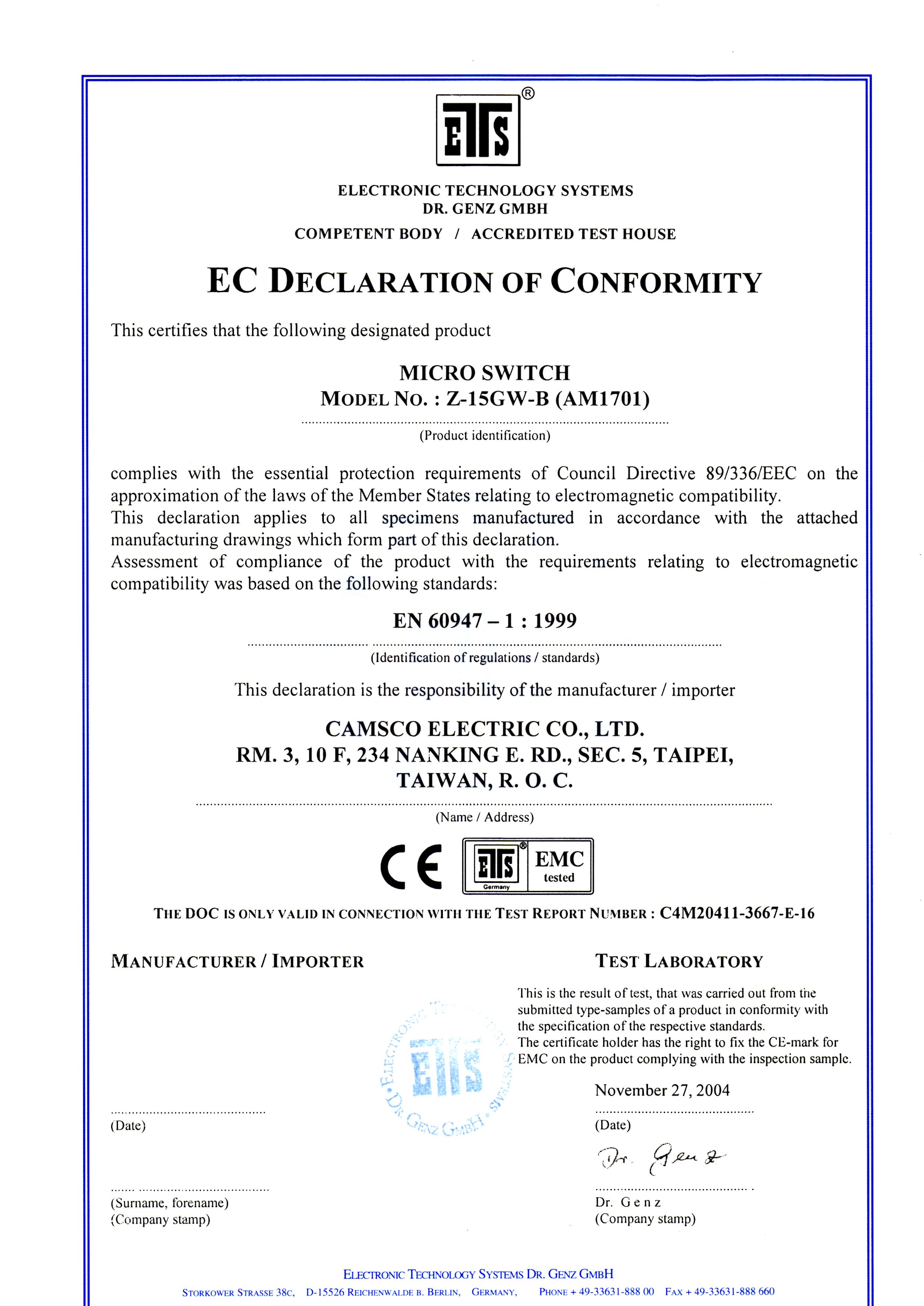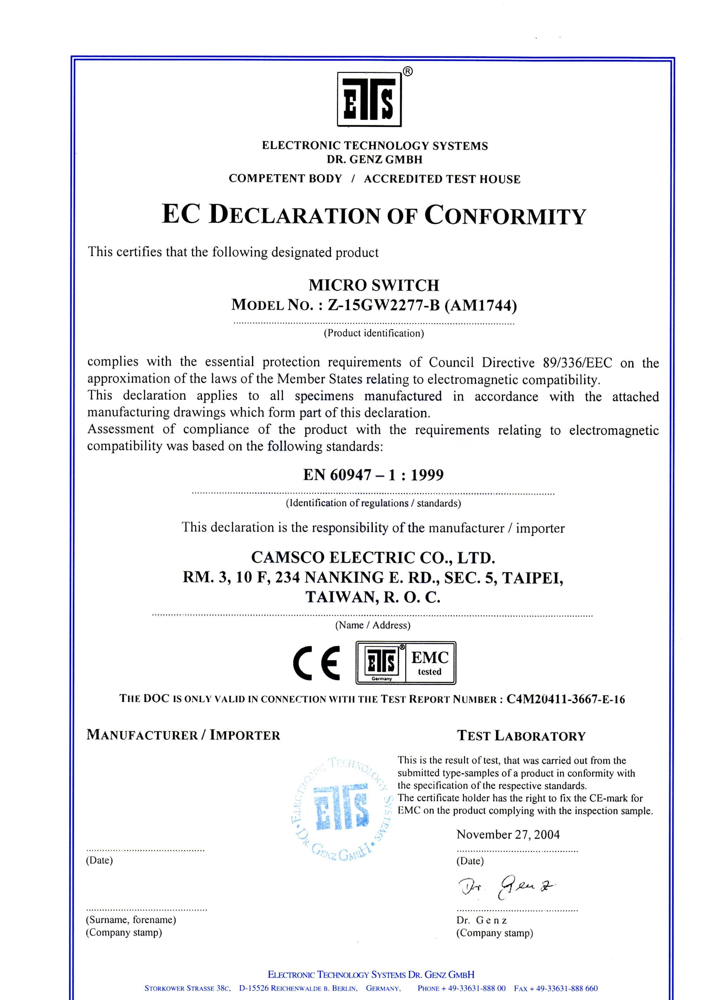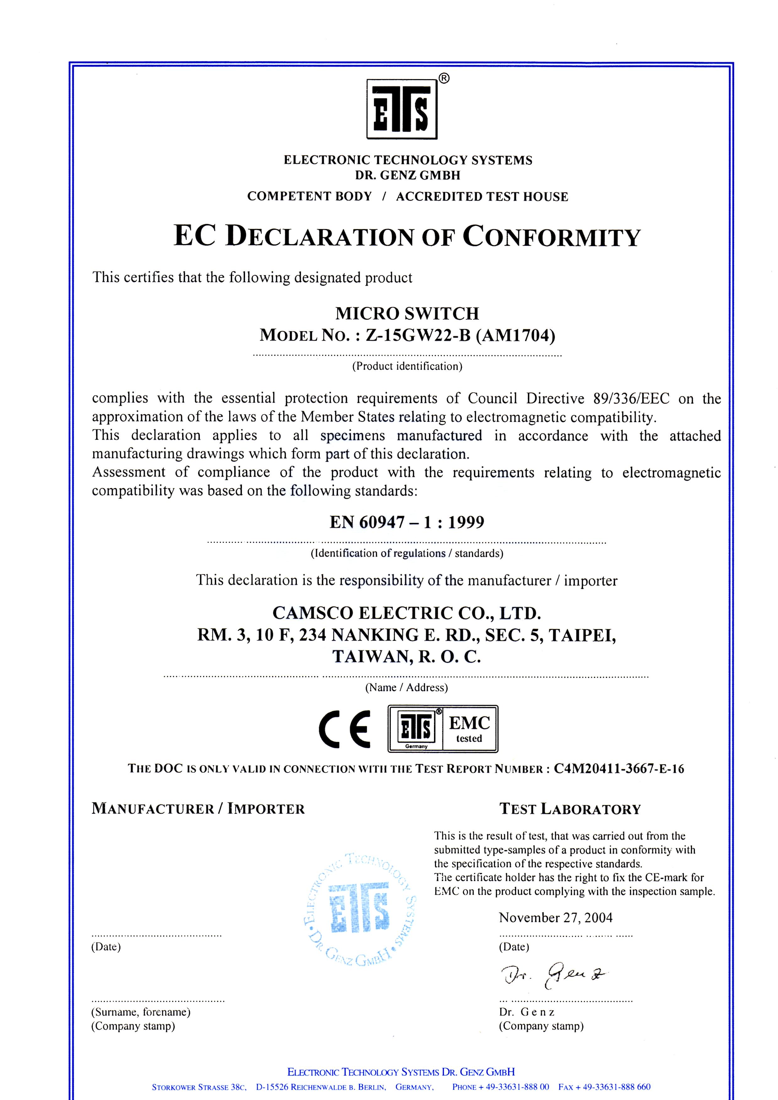 Camsco | CE Certifications