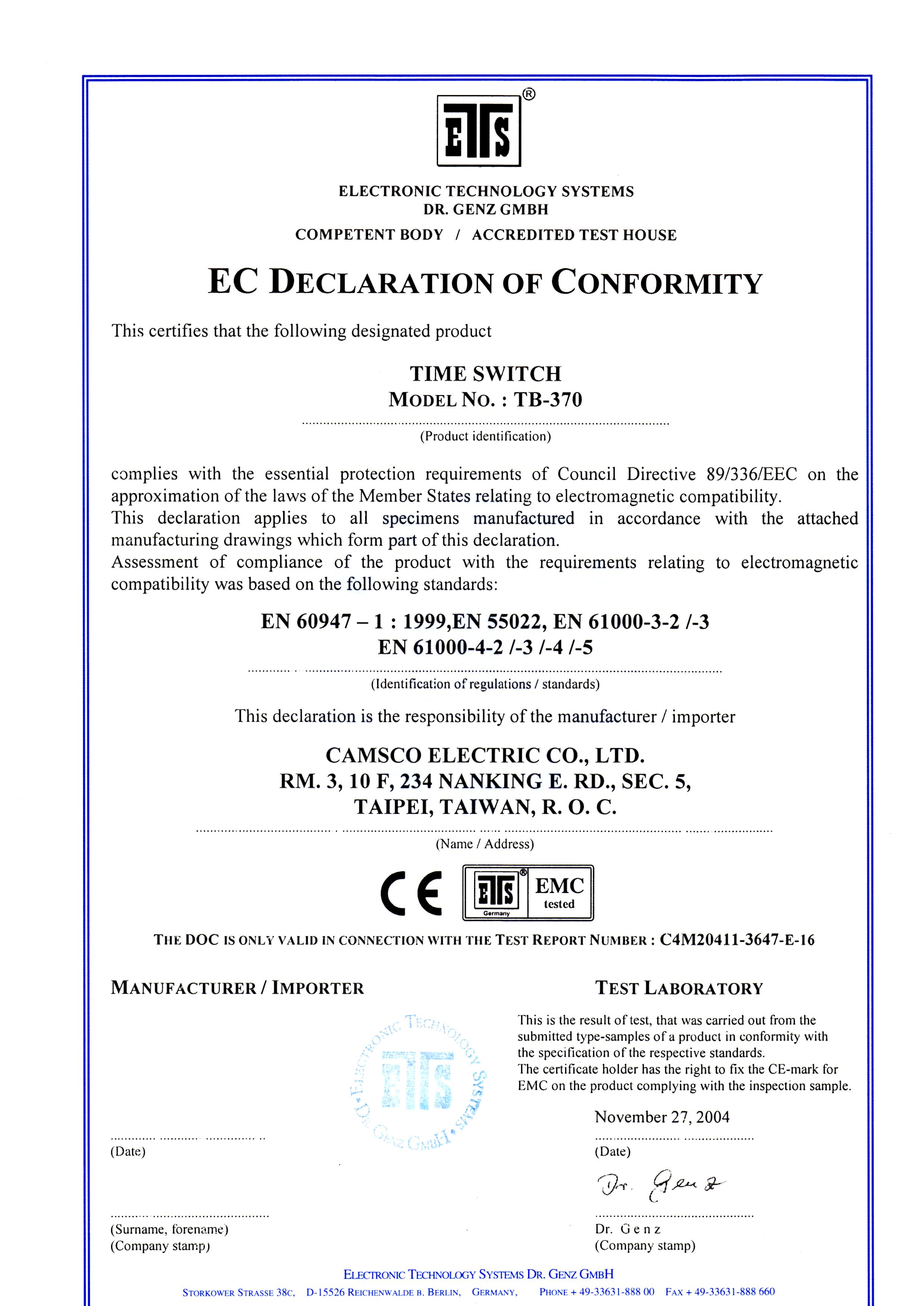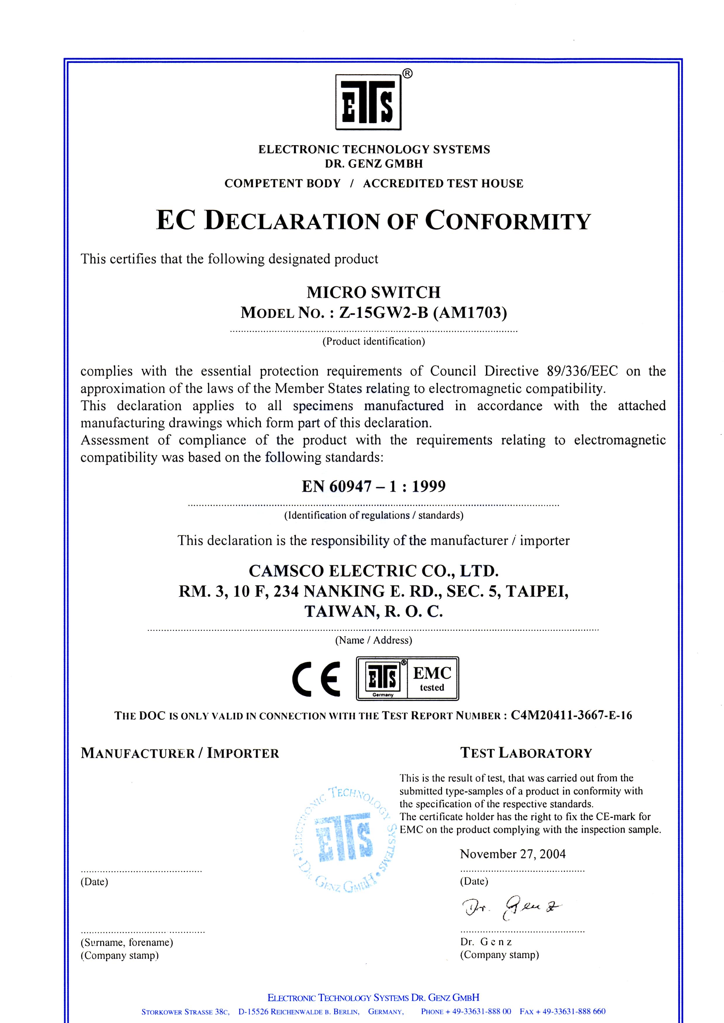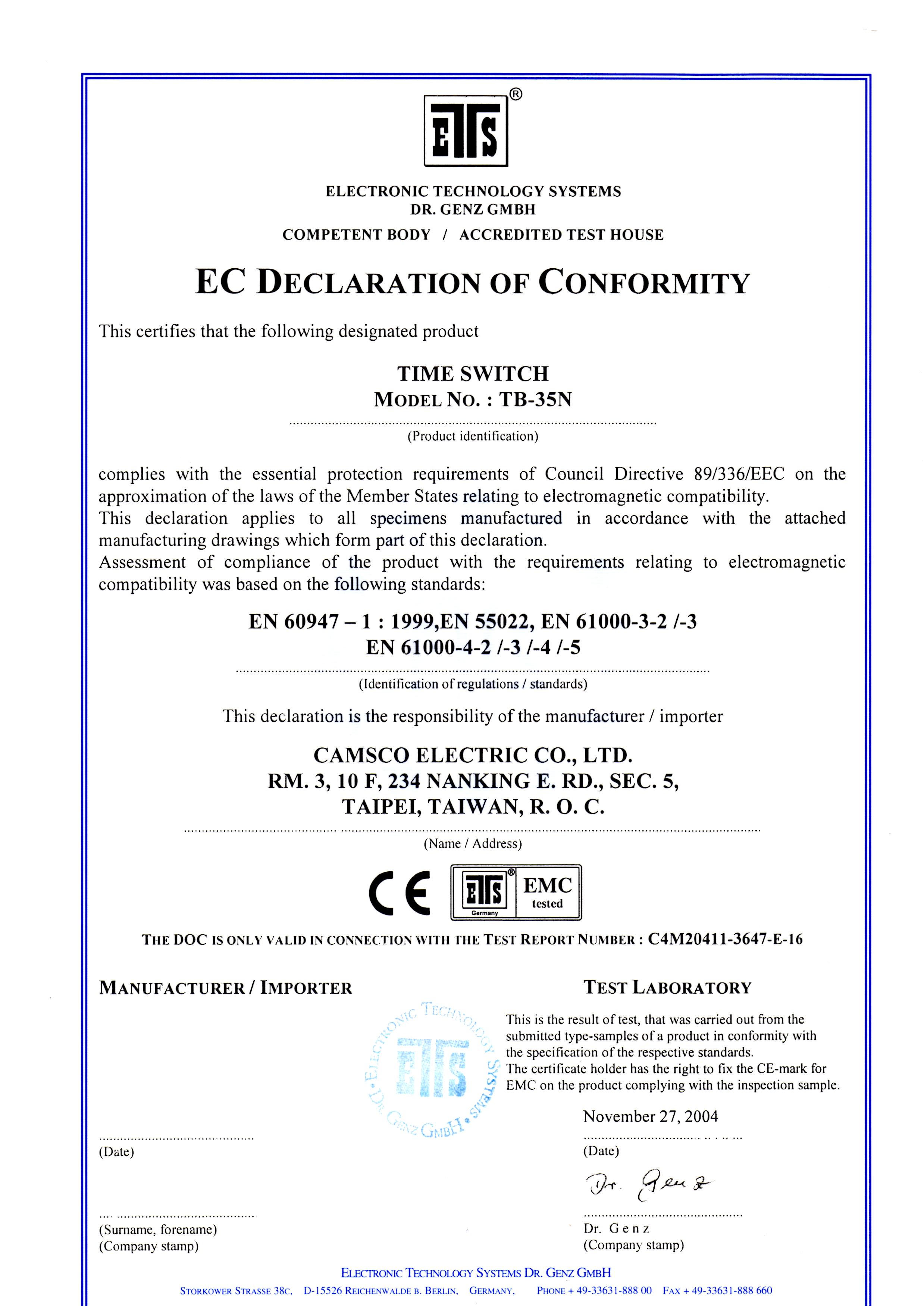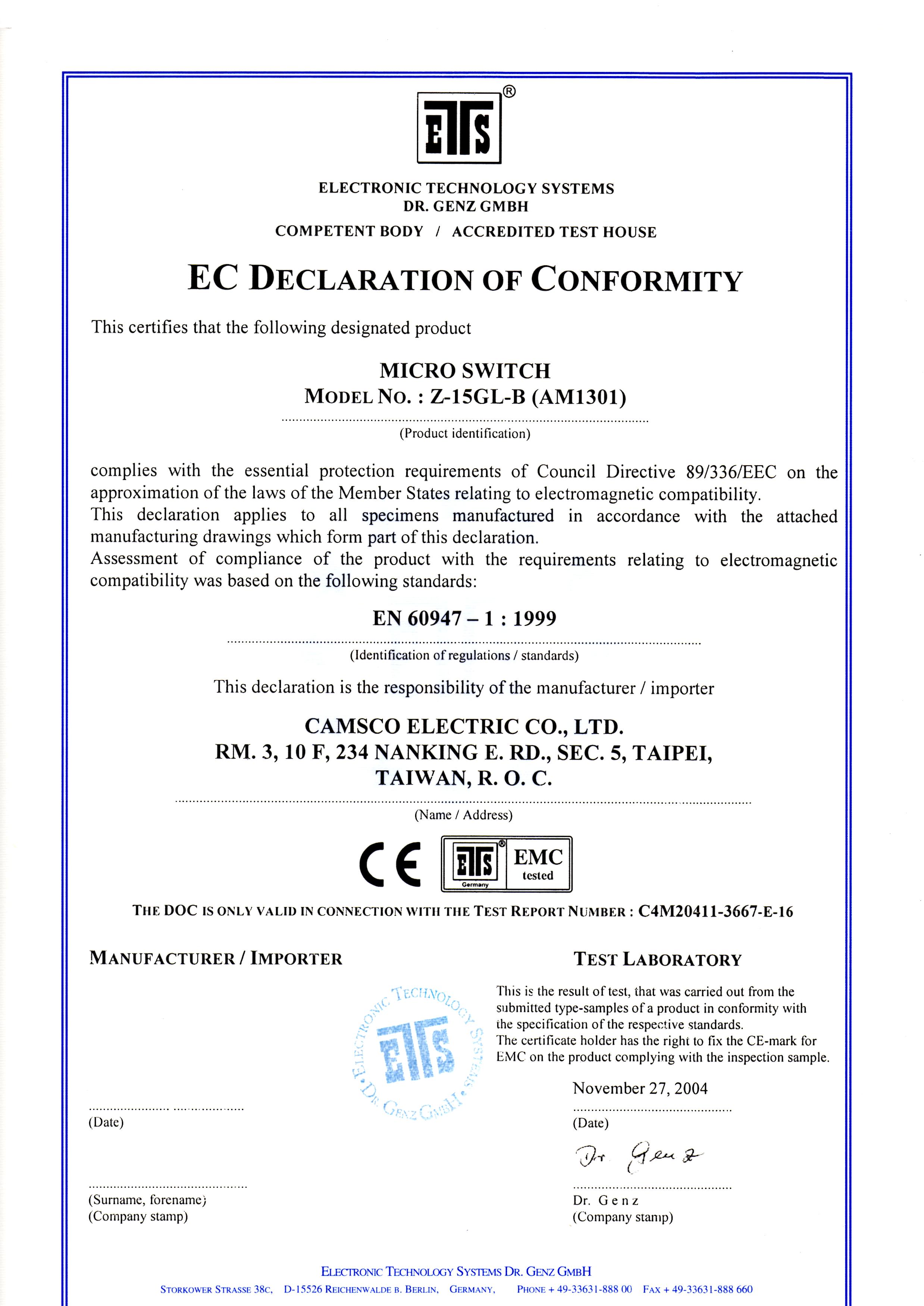 Camsco | CE Certifications
