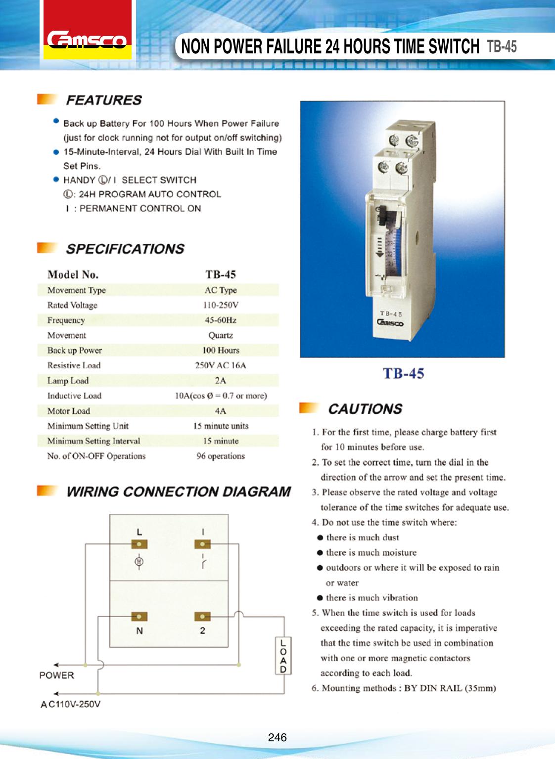Camsco | Non Power Failure 24 Hours Time Switch TB-45