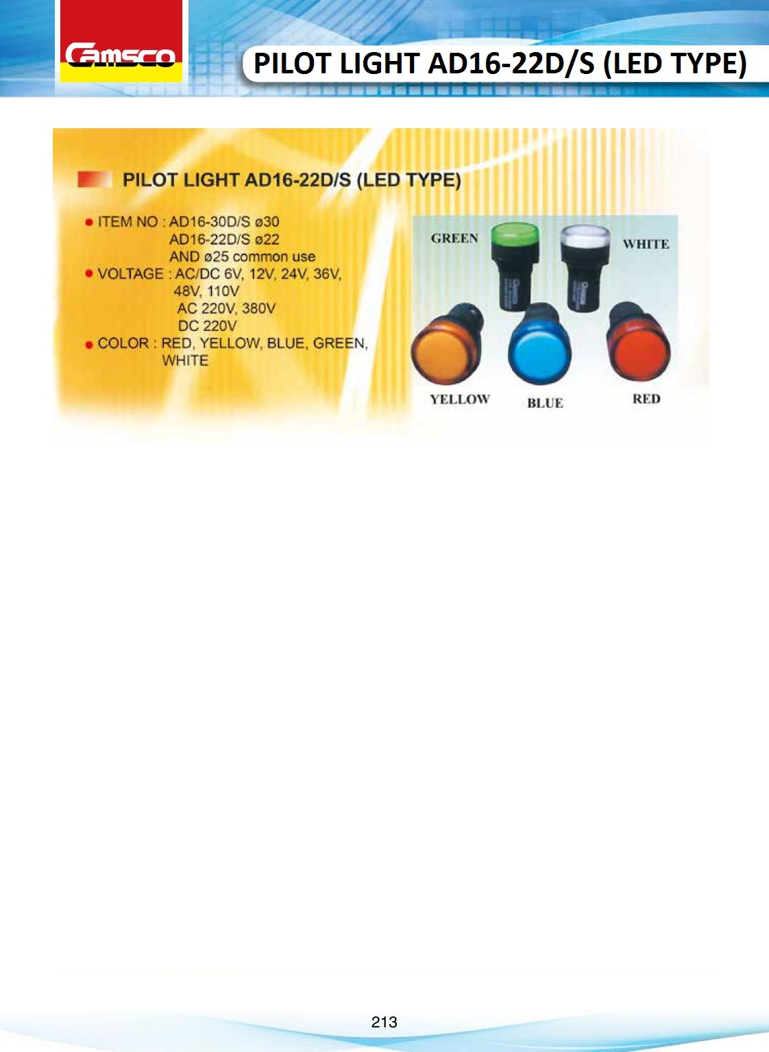 Camsco | Control Components – Pilot Light AD16-22D/S