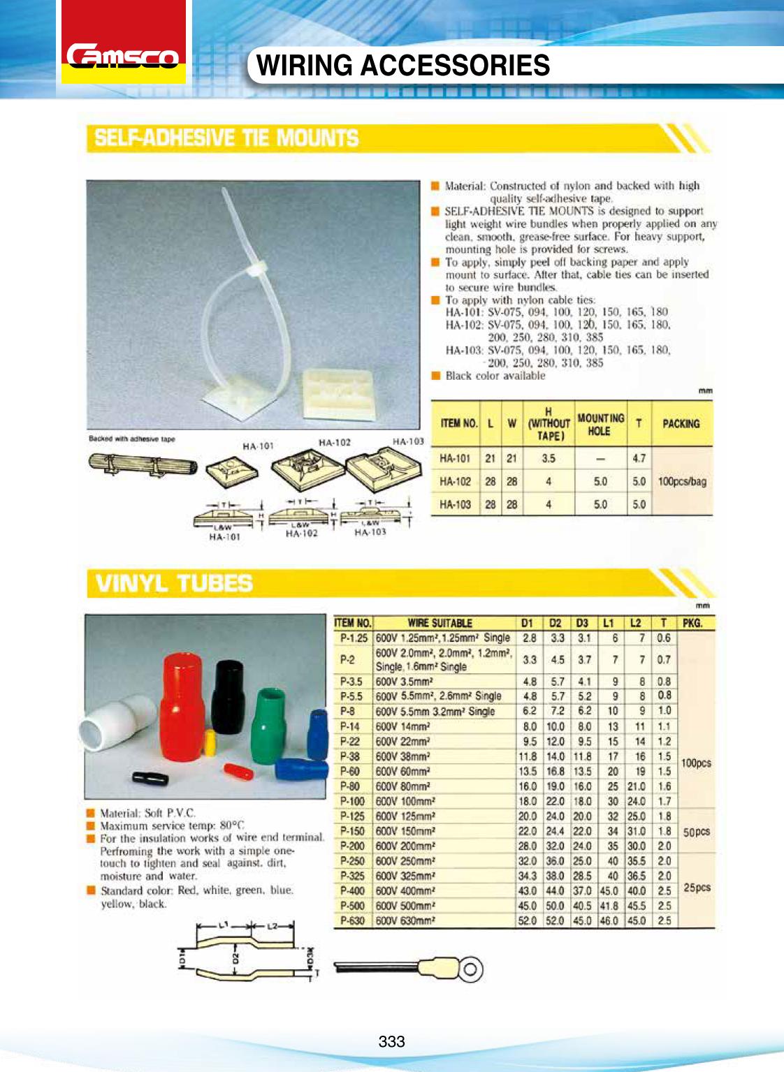 Camsco | Self-Adhesive Tie Mounts, Vinyl Tubes